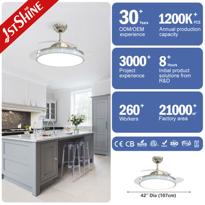 Ventilador de techo retráctil plegable de plástico de 3 piezas con luz, 42 pulgadas, control remoto inteligente