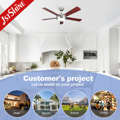 Ventilador de techo LED con luz y control remoto 52 pulgadas 5 cuchillas de madera contrachapada decorativa