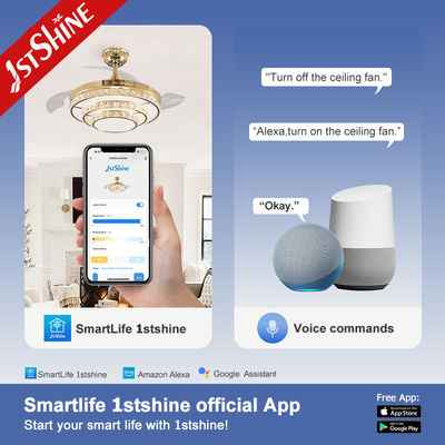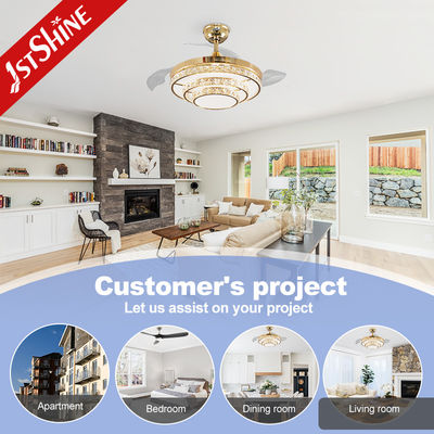 Es una combinación de un ventilador de techo retráctil y una lámpara de araña de cristal. Cuando se apaga, las aspas intrusivas del ventilador se retraen y se ocultan automáticamente, y visualmente la unidad se transforma en una lámpara de araña delgada y moderna. Este control remoto de alta gama le permite controlar la luz y la velocidad del ventilador por separado, 3 velocidades de ventilador.