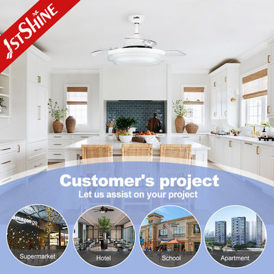 Descripción deVentilador de techo LEDEl cuerpo blanco de 42 pulgadas, las aspas transparentes de PC y el marco blanco hacen que este ventilador de techo con luz esté lleno de un estilo de diseño moderno, que es muy adecuado para la instalación en la sala de estar, el dormitorio y la sala de estudio.