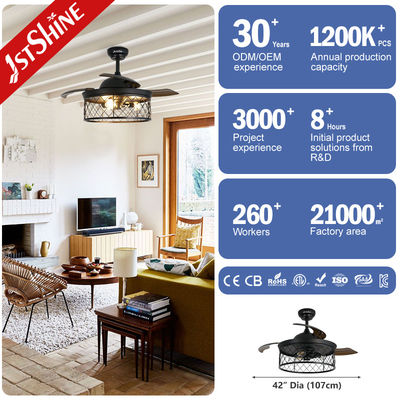 Nuestro ventilador de techo de la granja con luces tiene 3 cuchillas invisibles, que se estiran y se ponen dentro automáticamente cuando se enciende / apaga el ventilador.haciéndolo más duradero. Adapta a sus necesidades en todas las estaciones. Las luces de ventilador de techo de la granja tienen 3 soportes E26 estándar, y cada uno de los soportes se divide. Cualquier bombilla LED E26 se puede ensamblar fácilmente sin quitar la jaula.Ideal para el salón, dormitorio, restaurante, comedor, etc.