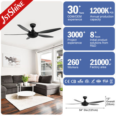 Ventilador de techo de plástico negro con motor de CC de 54 pulgadas con control remoto de 6 velocidades