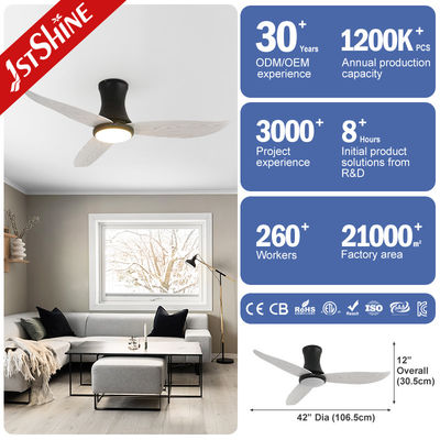 Este elegante y moderno ventilador de techo de 42 pulgadas presenta un acabado negro y tres aspas con vetas de madera que complementarán cualquier decoración contemporánea. Impulsado por un motor de CC silencioso, este ventilador es perfecto para dormitorios o cualquier otro espacio donde desee relajarse sin ruido. Con seis velocidades ajustables, puede personalizar el flujo de aire a su gusto.