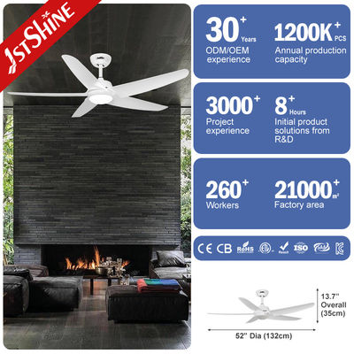 Ventilador de techo blanco con luz 5 cuchilla de plástico motor de corriente continua ahorro de energía